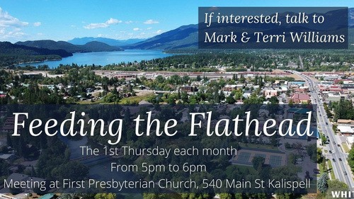 Notate your calendar to be part of Feeding the Flathead on the first Thursday of the month. To participate in this blessing of feeding and serving the needs of others, you may do so by bringing a dish, donating food items and/or coming out to serve with us. Come out and share the love of Jesus with others in a practical way.